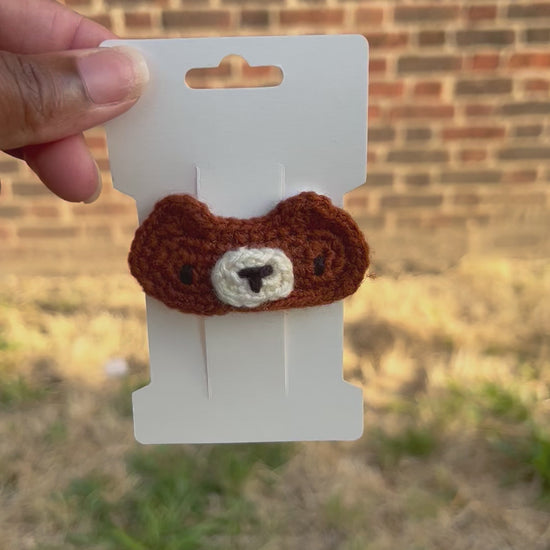 These animal clips are the cutest hair accessory. They are available in 4 different styles (bear, duck, cat and frog). They have been crocheted using 100% acrylic yarn, are backed with felt and attached to a metal clip.